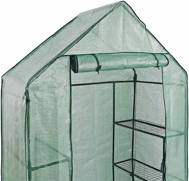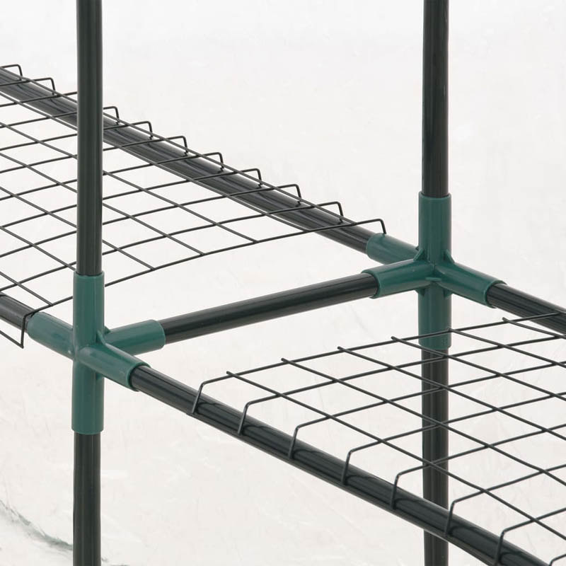 In diesem kompakten Gewächshaus können Sie problemlos im Stehen arbeiten. Acht Gestelle sorgen für beste Stabilität und Komfort.