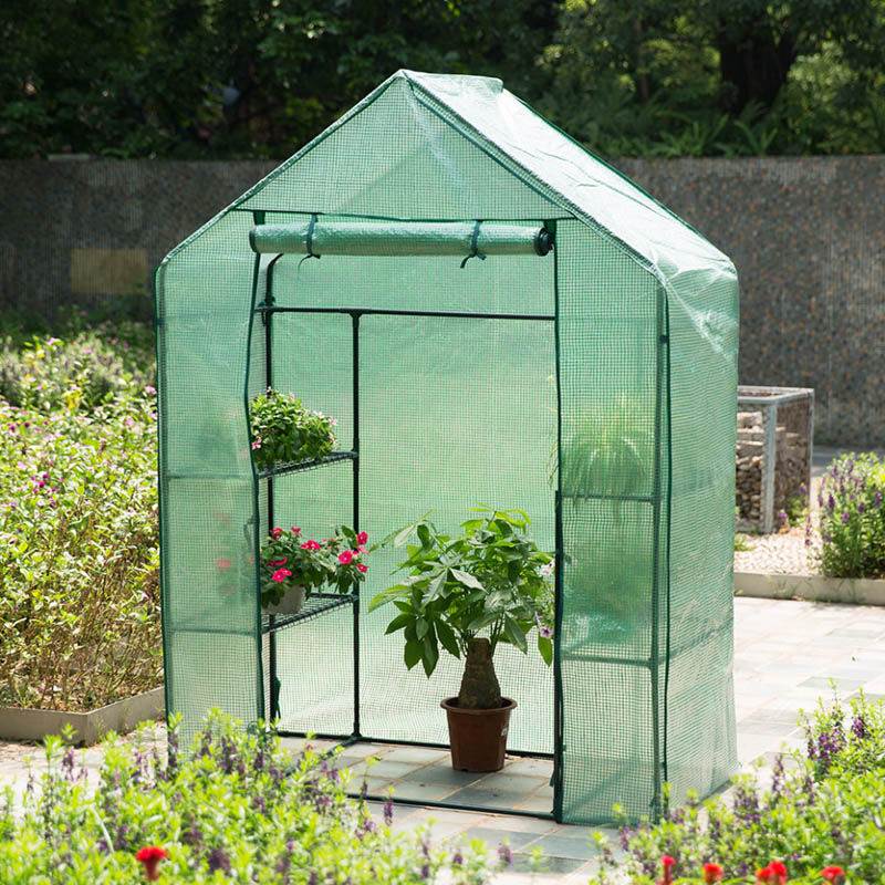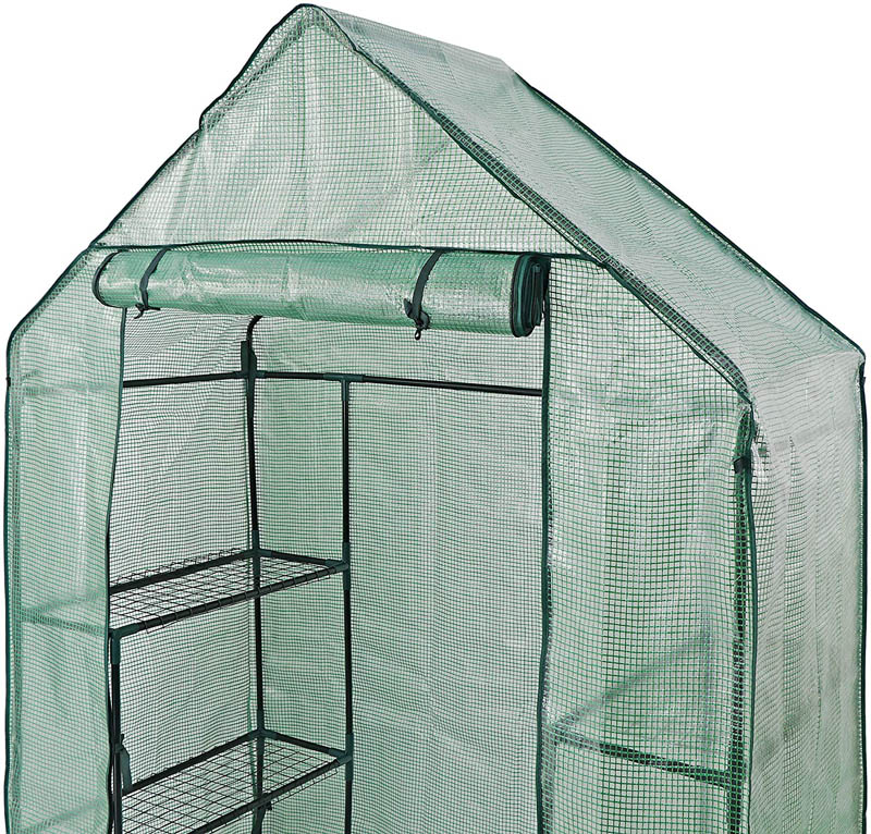 Das Gestell besteht aus pulverbeschichteten Stahlrohren. Die Hülle ist aus verstärktem 130-Gramm-Kunststoff produziert. Die Abdeckung ist unten extra lang, so dass Sie sie mit Sand beschweren können, um Ihr Gewächshaus fest zu fixieren, damit es direkt nach der Montage sicher gegen Wind und Regen isoliert ist.
