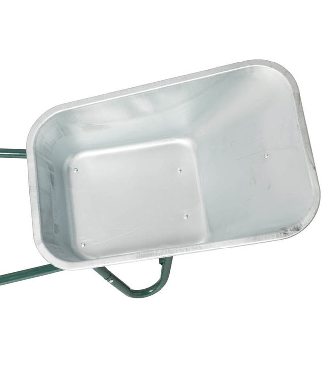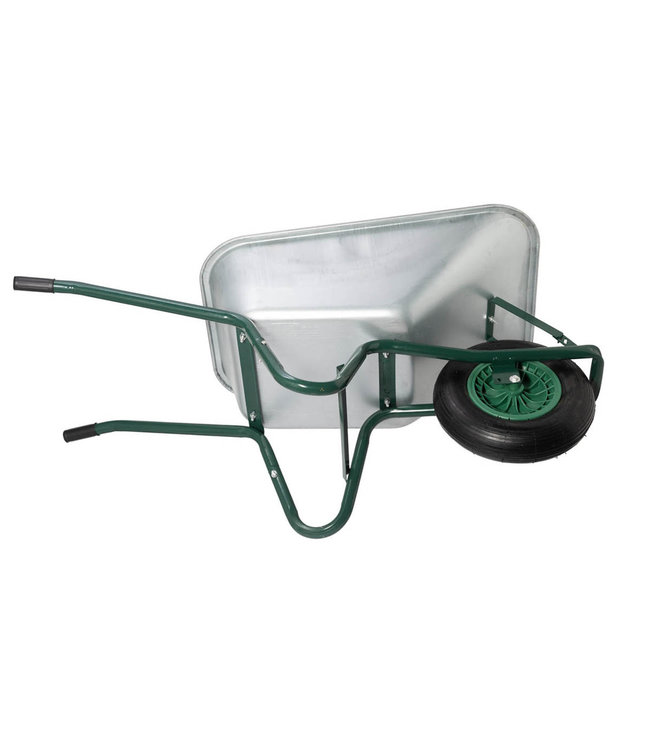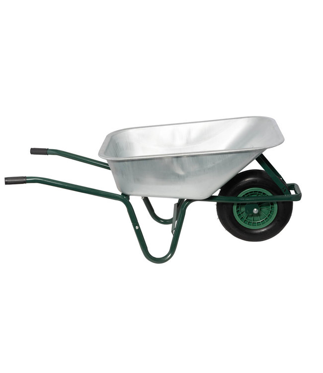 Hat eine flache Schüssel mit einer geraden Nase. Die Schubkarre hat eine maximale Tragfähigkeit von 250 kg und ein Fassungsvermögen von 100 Litern. Ausführung mit Luftbereifung.