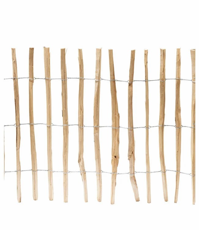 Mit diesem Schafzaun können Sie ganz einfach und schnell einen soliden und stilvoll ausgeführten Zaun errichten. Dieses Produkt ist auch als französischer Schafzaun oder als englischer Zaun bekannt. Der Gitterzaun besteht aus vertikalen Latten von De Hazelaar. Dadurch ist das Spalier nie zu 100 % gerade, was Ihrem Garten einen verspielten und natürlichen Effekt verleiht. Das verarbeitete Holz ist rein und naturbelassen, d. h. es wurde von jeglicher chemischen Behandlung abgesehen. Die Lamellen sind durch eine Reihe von dicken verzinkten Drähten fest verbunden, die witterungsbeständig sind und daher nicht rosten.
